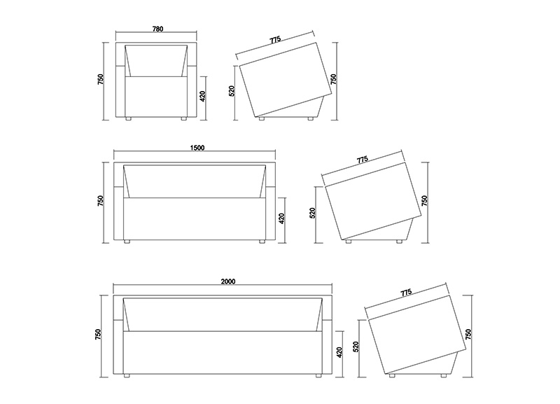 切方沙发遵循“少即是多”的设计思维,采用切方的手法将普通的方块经过巧妙的切割,呈现出造型突出而又简洁的形态,再贴合人体调整各个角度的尺寸,切方沙发就诞生了。